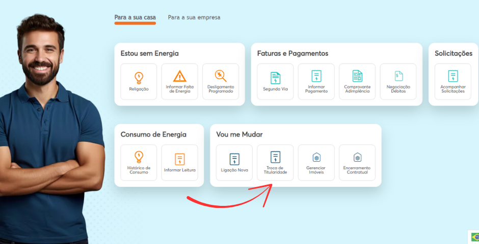 Na Enel, basta acessar o site, clicar em “para você” e “troca de titularidade”. Depois, é só seguir o que o site pede.