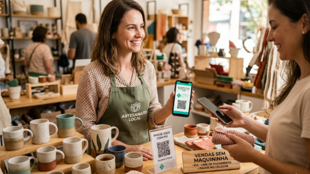 Existem dois tipos: o QR Code fixo, que você imprime e deixa no balcão, e o dinâmico, gerado na hora com o valor já embutido.