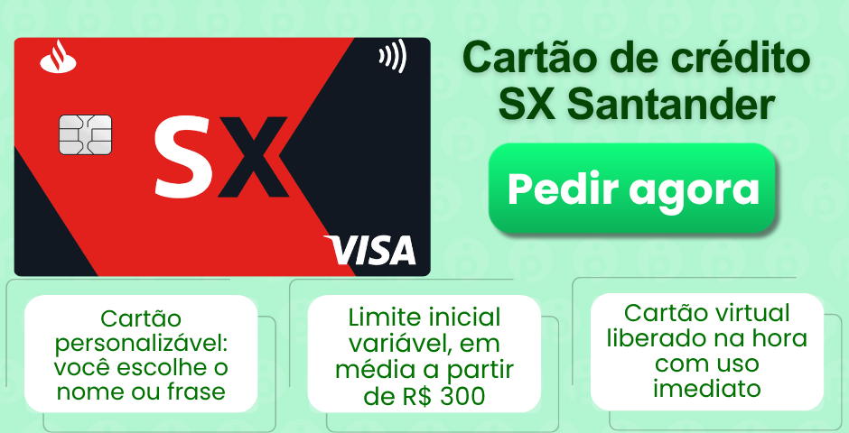O tradicional Santander Free passou por reformulação e agora se chama SX Santander. Ele continua sendo uma excelente opção sem anuidade, com facilidades para quem está começando a usar crédito.