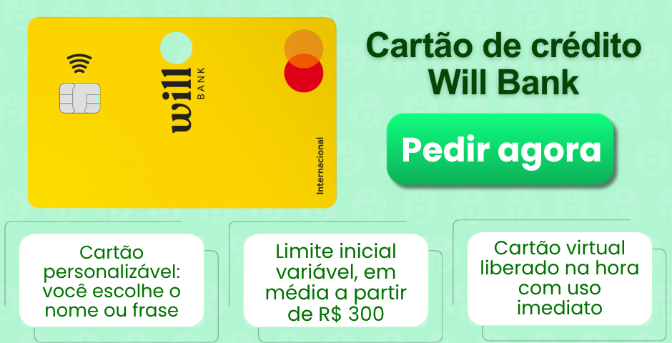 Cartão novo, moderno e com forte crescimento. O Will Bank é voltado para quem busca simplicidade, fácil aprovação e controle direto pelo app.